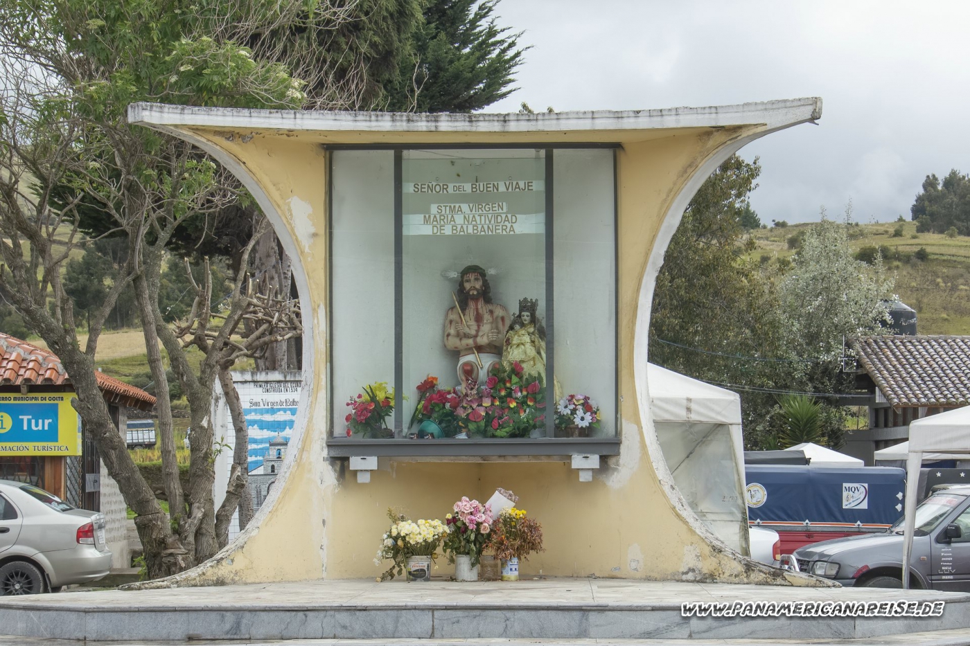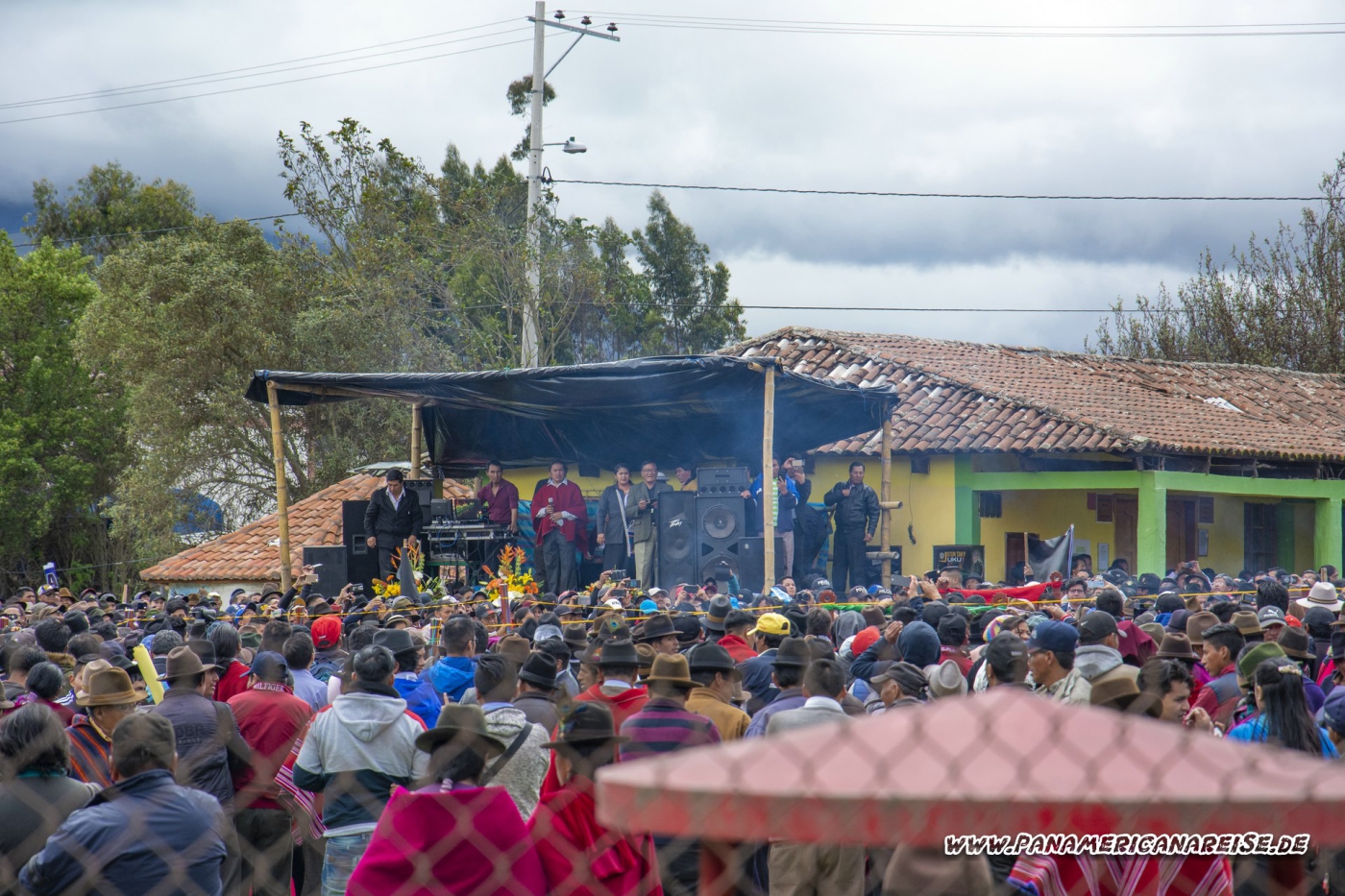 14.05.2019 Wir besuchen die älteste Kirche in Ecuador. Die Iglesia de Balbanera steht in Colta, einem kleinen Dorf. An dem Tag wundern wir uns über den unglaublichen Verkehr und die vielen Menschen auf der Straße, finden auch nur etwas vom Dorf entfernt einen Parkplatz. Es stellt sich heraus, dass just an dem Tag eine Wahlkampfveranstaltung für Kommunalwahlen stattfindet.
